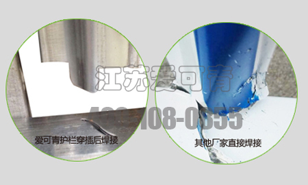 | 愛可青S型柵條45度穿插焊接:柵條穿插后焊接保證了護欄的整體強度,延長了使用壽命,45度穿插焊接改變了反光膜的反光角度 ,夜間車燈的照射下,使反光膜達到了佳的反光效果。 |